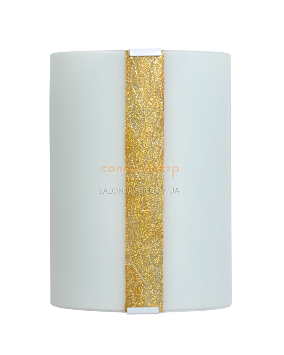 Світильник настінний виробництва компанії Декора (Україна); Матеріал: метал, скло; Колір: білий+золото; Висота: 25 см; ширина: 19 см; лампи: 1 х E27 х 60 Вт.