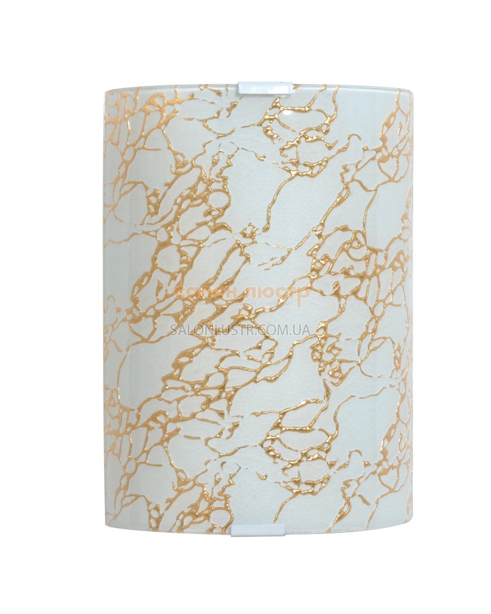 Світильник настінний виробництва компанії Декора (Україна); Матеріал: метал, скло; Колір: білий+золото з малюнком; Висота: 25 см; ширина: 19 см; лампи: 1 х E27 х 60 Вт.