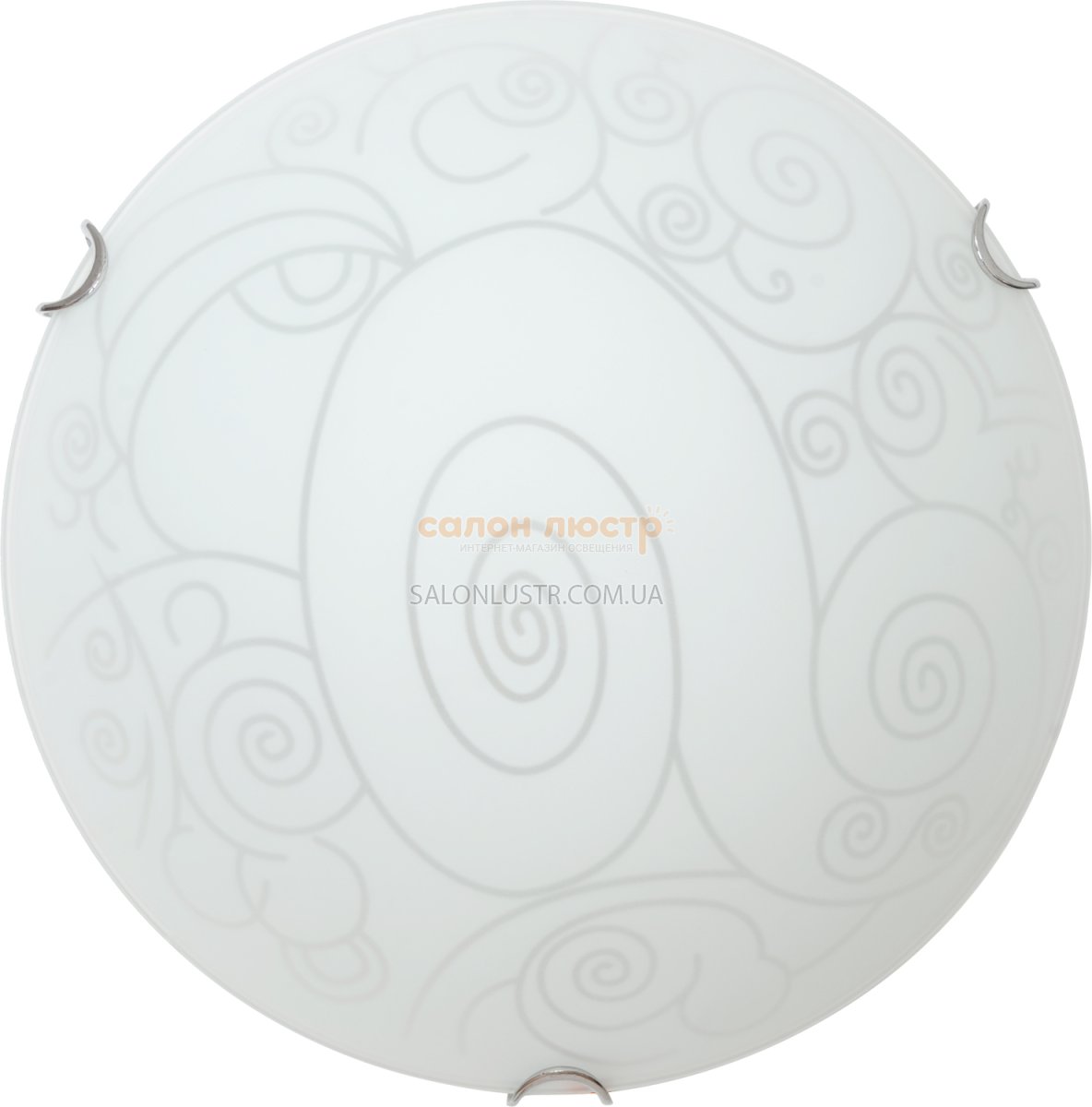 Світильник стельовий настінний виробництва компанії Декору (Україна) Матеріал: метал/стекло; Колір: білий з малюнком Висота: 8 см; діаметр: 30 см; лампи: 2 х E27х 60 Вт.