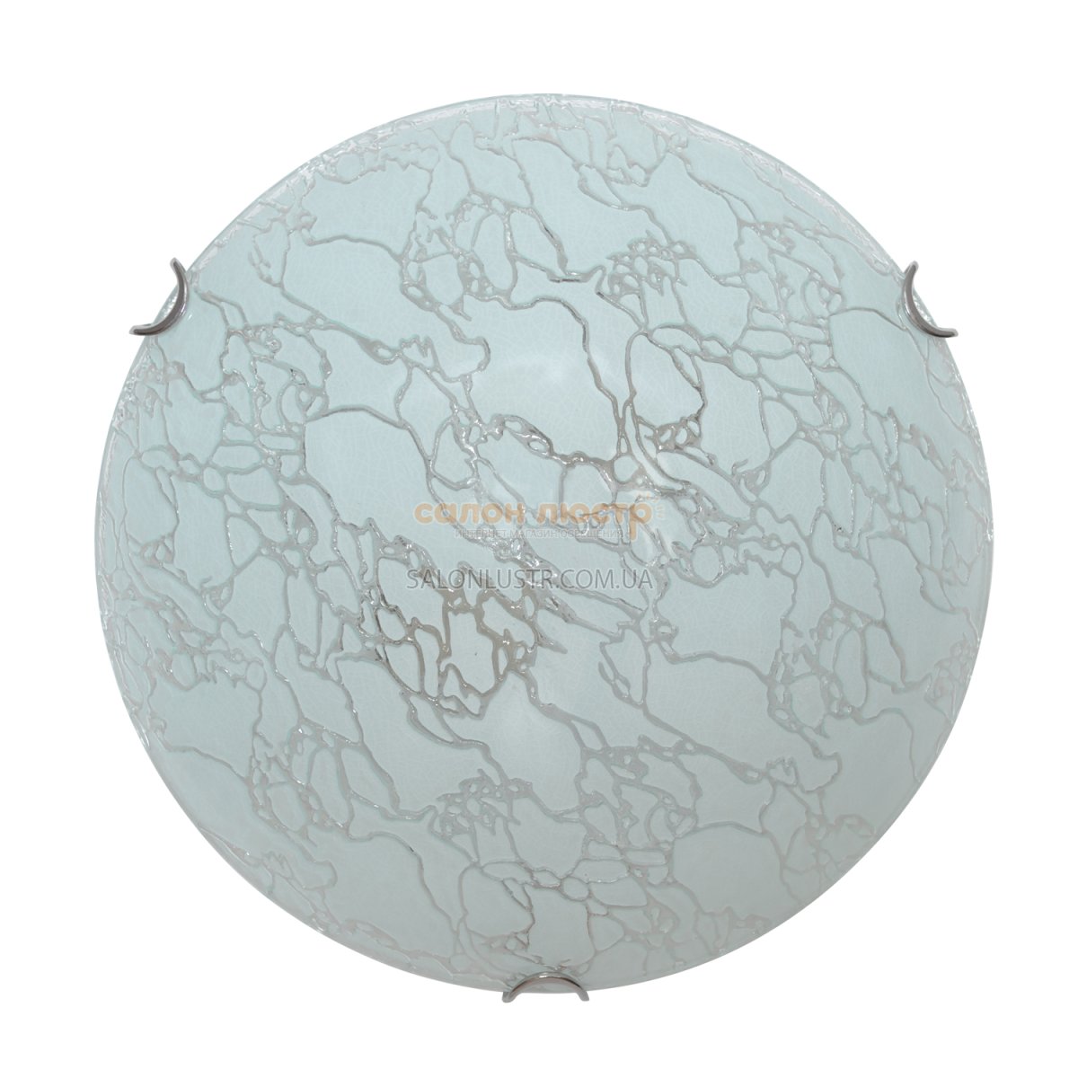 Світильник стельовий настінний виробництва компанії Декора (Україна); Матеріал: метал, скло; Колір: білий+срібло з малюнком; Висота: 8 см; діаметр: 40 см; лампи: 3 х E27 х 60 Вт.