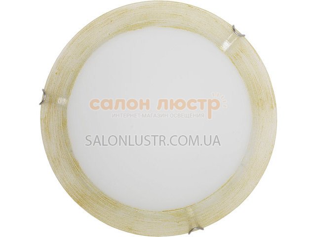 Світильник стельовий, настінний виробництва компанії Декора (Україна); Матеріал: метал, скло; Колір: білий+золото; Висота: 10.5 см; діаметр: 30 см; лампи: 2 х E27 х 60 Вт.