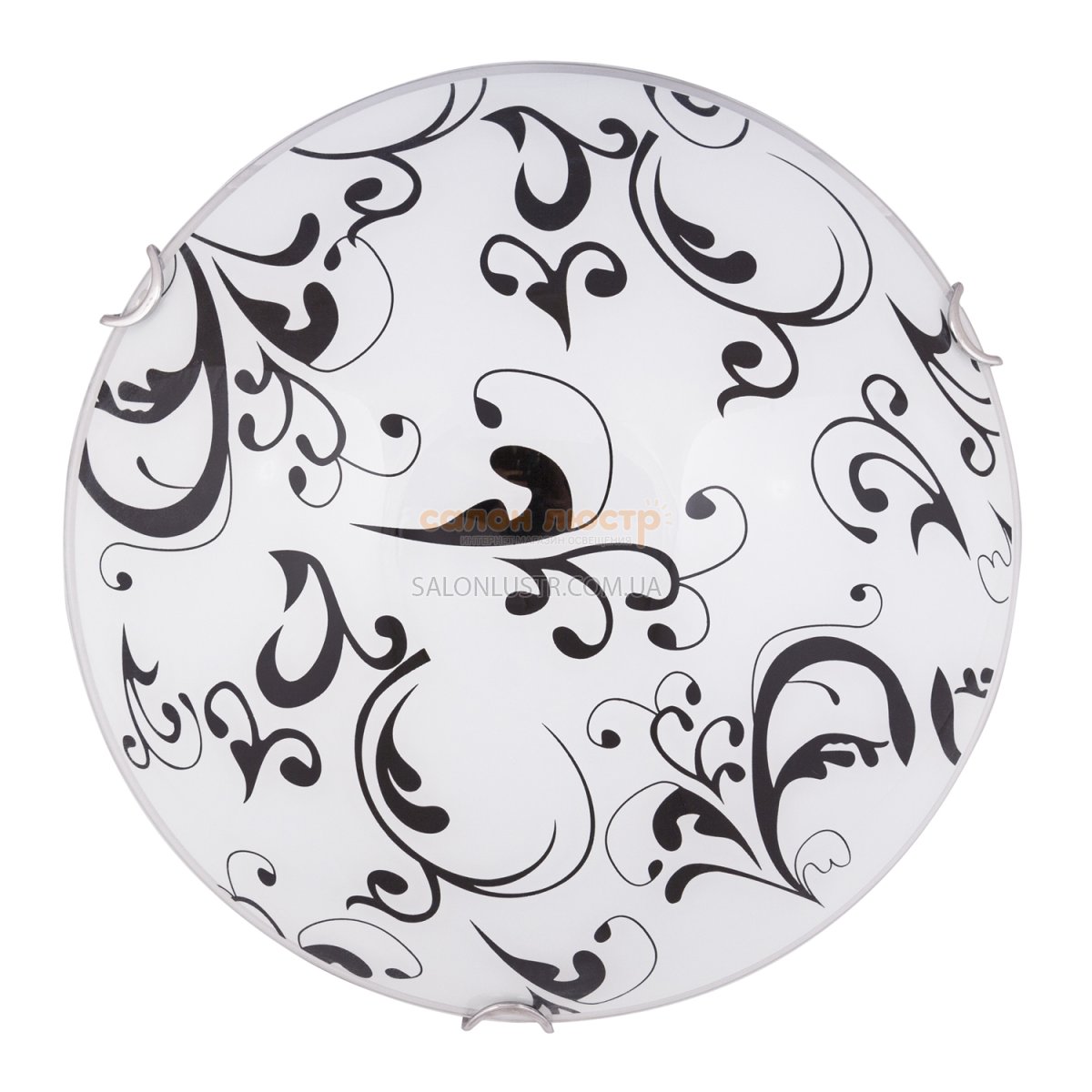 Світильник стельовий, настінний виробництва компанії Декора (Україна); Матеріал: метал, скло; Колір: білий c декоративний малюнком; Висота: 10.5 см; діаметр: 30 см; лампи: 2 х E27 х 60 Вт.