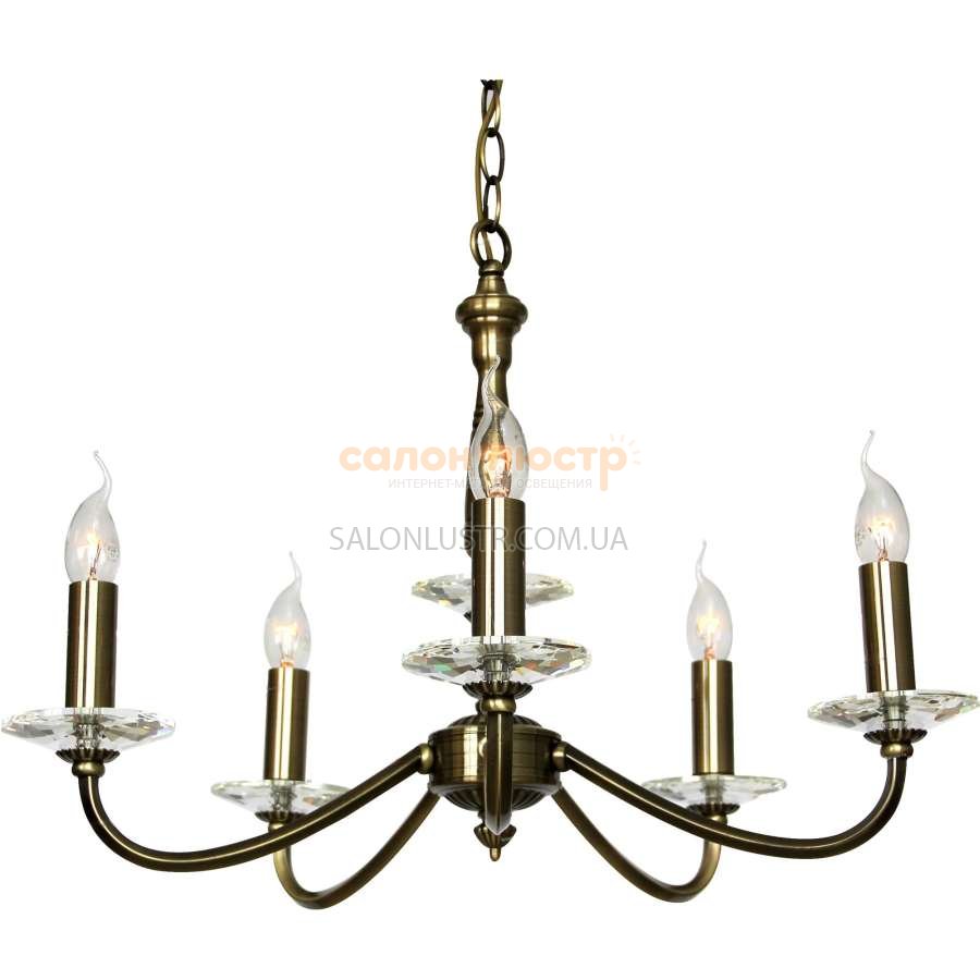 Люстра класична виробництва компанії WUNDERLICHT (Німеччина); Матеріали: метал, скло; Колір підстави: бронза; Висота: 42-100 см; Ширина: 58 см; Тип патрона: Е14 Кількість ламп: 5; Потужність: 60 W.