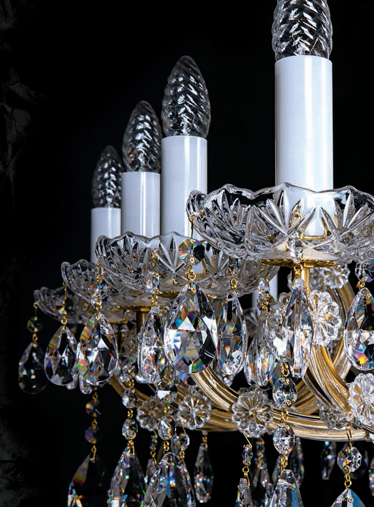 Люстра кришталева виробництва чеської компанії Art Glass Maria Terezia - це блискуче розкішшю добуток мистецтва. З добірністю й елегантною витонченістю вона ефектно доповнить класичний інтер'єр Вашого будинку. Люстри Артгласс - це комбінація блиску й розкоші металу й чеського кришталю вищої якості. Купивши в нашому інтернет-магазині люстру Art Glass Ви можете також підібрати з однієї колекції світильник настінний(бра) Art Glass, торшер, настільну лампу, крапкові світильники із кришталевими підвісками. Світильники Art Glass - іскристий діамант Вашого інтер'єру!