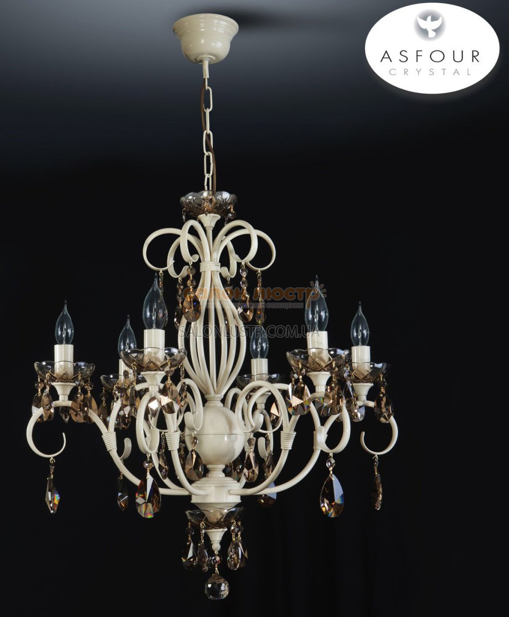 Люстра кришталева виробництва Україна; Матеріал: фарбований метал, кришталь"ASFOUR"; Колір основи: Крем; Висота: 82-97 см; ширина: 57 см; лампи: 6 х Е-14 х 60 Вт.