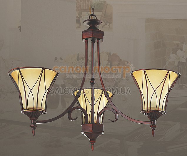 Люстра класична виробництва компанії TINKO; Матеріал: метал, скло; Колір основи: антична мідь із патиною; Колір плафона: жовтий; Висота: 60-90 см; ширина: 65 см; лампи: 3 х Е27 х 60 Вт.