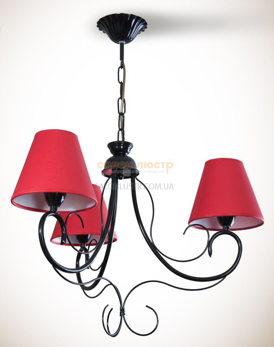 Люстра класична виробництва компанії Україна; Матеріал: фарбований метал (ручний розпис),полімер,текстиль; Колір основи: Чорний глянець; Номер абажура: 01N; Колір тканини абажура: 1608; Висота: 60-72 см; ширина: 53 см; лампи: 3 х Е-14 х 60 Вт.