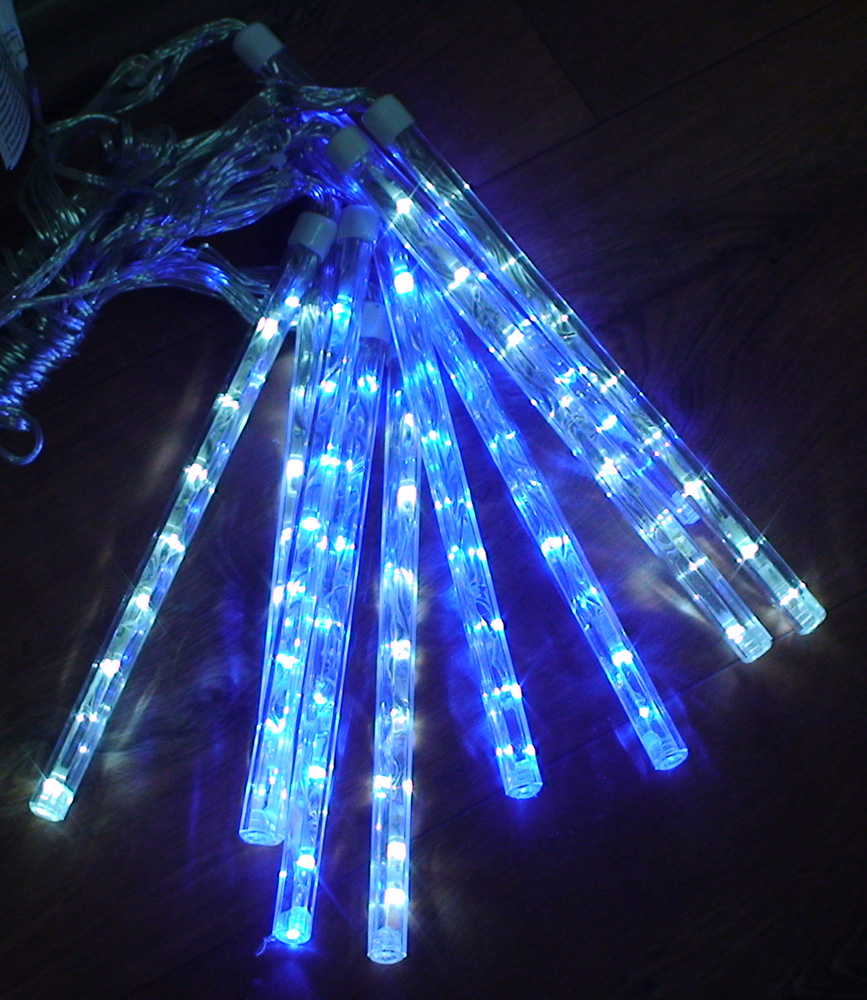 - Довжина: 4 метра+ 5 метрів проведення підключення; висота: 0, 22 метра; колір світлодіодів: синій; колір кабелю: прозорий; кількість світлодіодів: 80 шт.