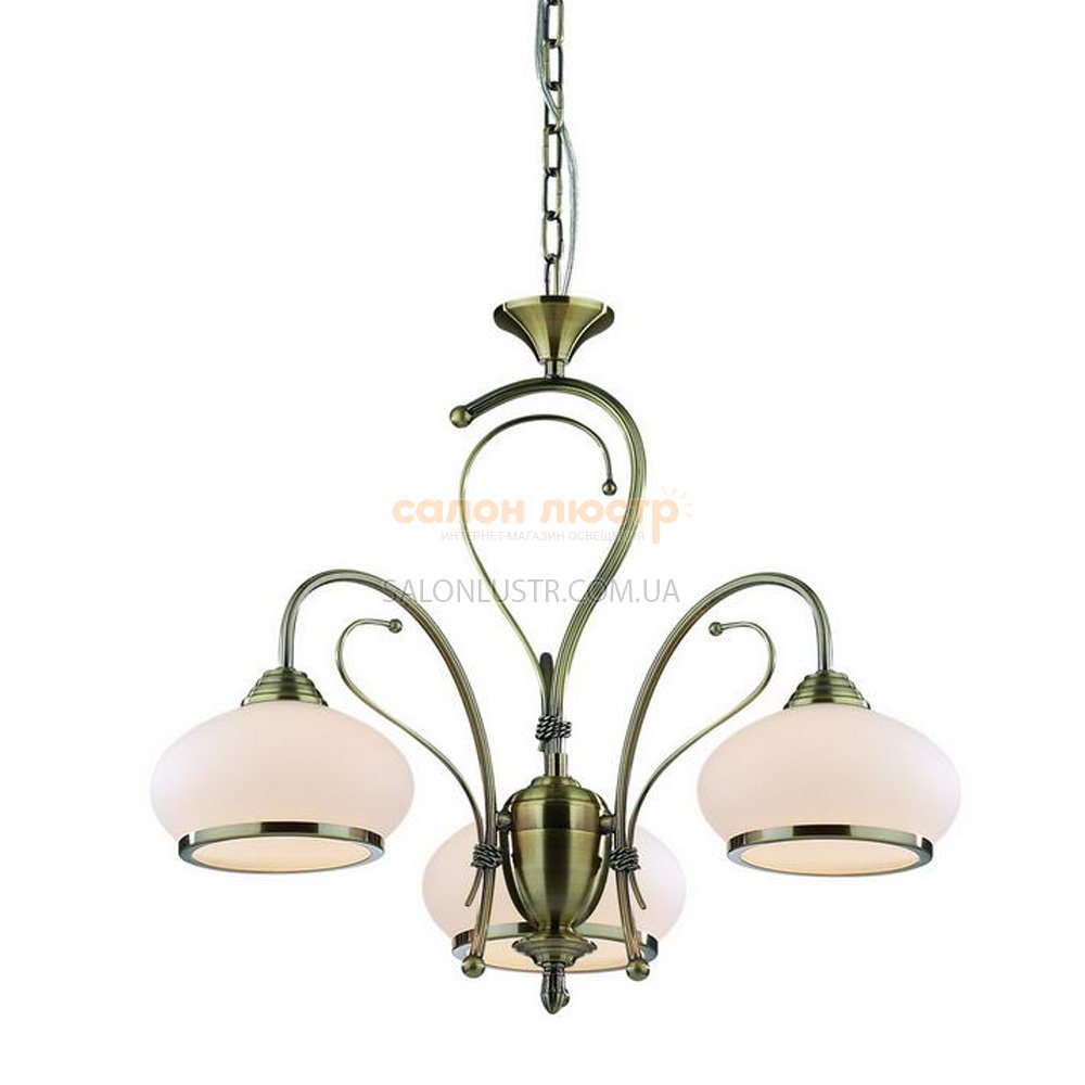 Люстра класична виробництва компанії "BLITZ" (Німеччина); Матеріал: метал / стекло; Колір: бронза / білий матовий; Висота: 70-91 см; ширина: 58 см; лампи: 3 х Е-27 х 40 Вт.