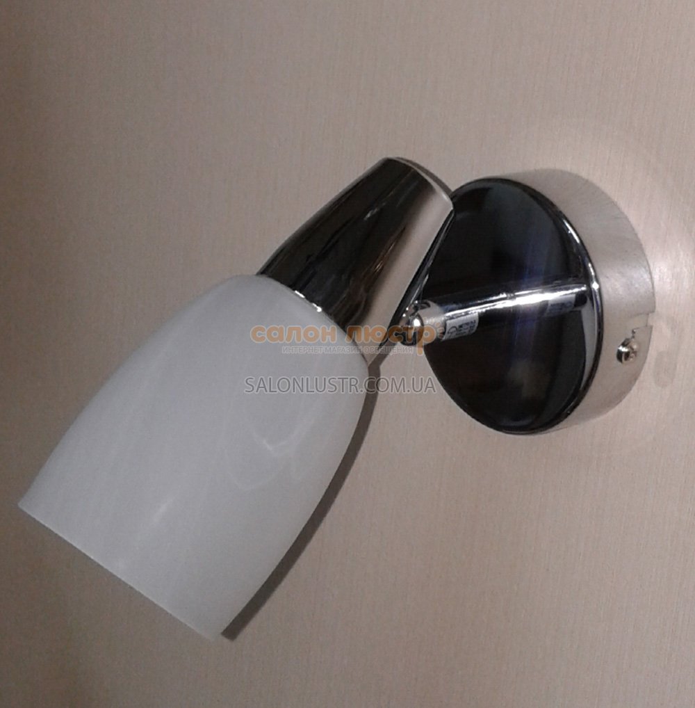 Спот виробництва компанії Tinko; Матеріал: метал / стекло; Колір : хром / білий з малюнком; Висота: 13 см; ширина: 8 см; виступ: 18см; лампи: 1 х E14 60W.