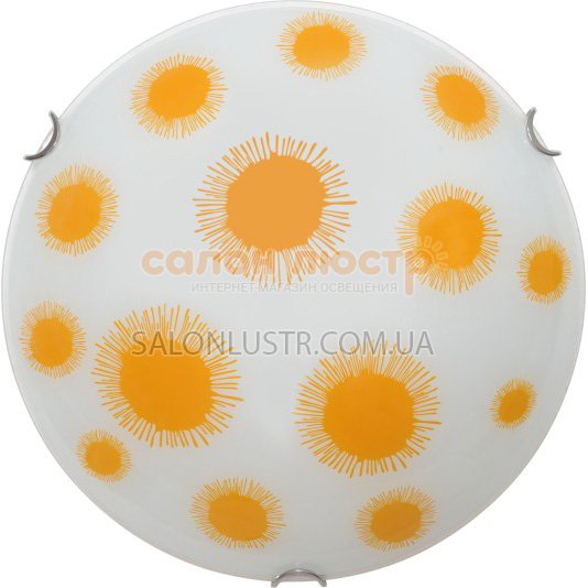 Світильник стельовий настінний виробництва компанії Декору (Україна) Матеріал: метал/стекло; Колір: білий з малюнком; Висота: 8 см; діаметр: 30 см; лампи: 2 х E27х 60 Вт.