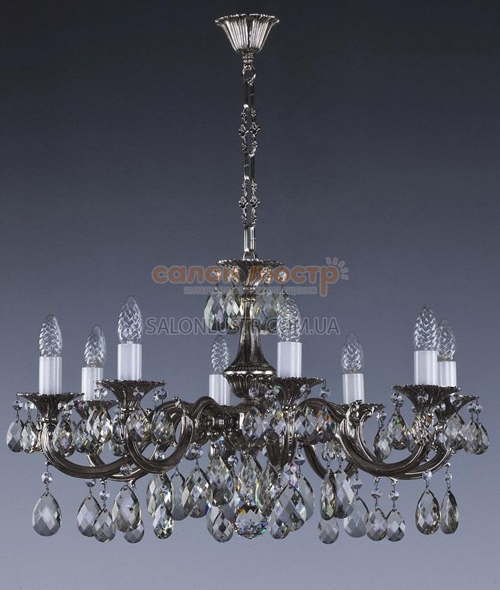 Люстра кришталева виробництва чеської компанії Art Glass; Матеріал: метал, кришталь; Колір (підстави): Nickel (хром); Тип (кришталю): Зlassic (колір: 8007); Висота: 41 см; діаметр: 67 см; лампи: 8 х Е-14 х 40 Вт.