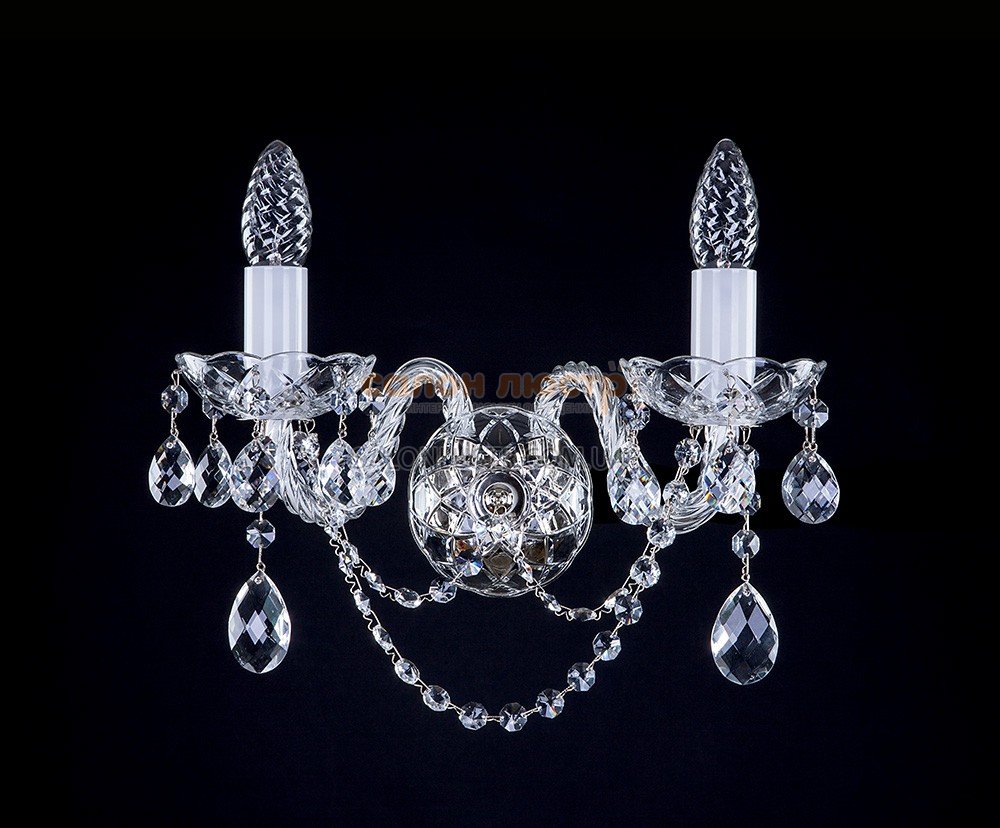 Світильник настінний(бра) кришталевий виробництва чеської компанії Art Glass Maggie - це блискуче розкішшю твір мистецтва. З добірністю й елегантною витонченістю він ефектно доповнить класичний інтер'єр Вашого будинку. Бра Артгласс - це комбінація блиску й розкоші металу й чеського кришталю вищої якості. Купивши в нашому інтернет-магазині бра Art Glass Ви можете також підібрати з однієї колекції люстри Art Glass, торшер, настільну лампу, крапкові світильники із кришталевими підвісками. Світильники Art Glass - іскристий діамант Вашого інтер'єру! Матеріал: метал, кришталь; Колір (підстави): Nickel (хром); Тип (кришталю): Classic (прозорий); Висота: 25 см; ширина: 34 см; лампа: 2 х Е-14 х 40 Вт; У комплект входить шнур з вилкою для підключення бра.