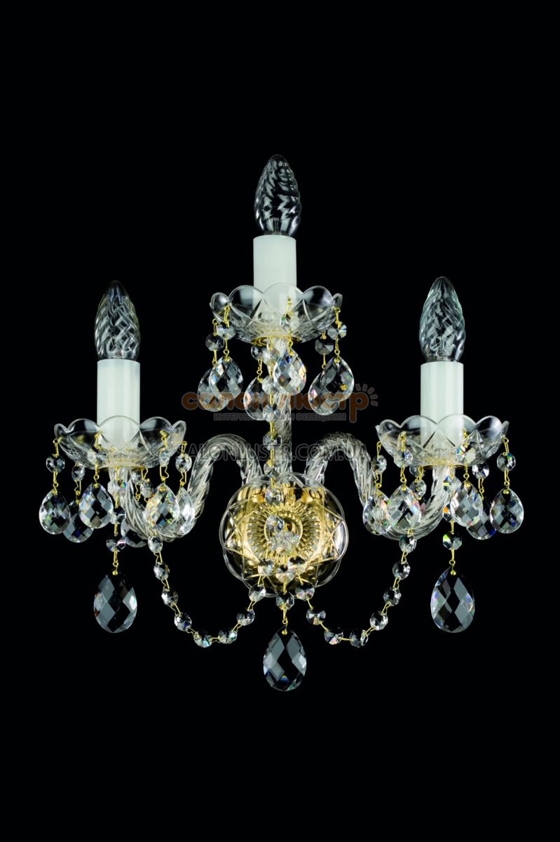 Світильник настінний(бра) кришталевий виробництва чеської компанії Art Glass Maggie - це блискуче розкішшю твір мистецтва. З добірністю й елегантною витонченістю він ефектно доповнить класичний інтер'єр Вашого будинку. Бра Артгласс - це комбінація блиску й розкоші металу й чеського кришталю вищої якості. Купивши в нашому інтернет-магазині бра Art Glass Ви можете також підібрати з однієї колекції люстри Art Glass, торшер, настільну лампу, крапкові світильники із кришталевими підвісками. Світильники Art Glass - іскристий діамант Вашого інтер'єру! Матеріал: метал, кришталь; Колір (підстави): Gold (золото); Тип (кришталю): Classic (прозорий); Висота: 34 см; ширина: 34 см; лампа: 3 х Е-14 х 40 Вт; У комплект входить шнур з вилкою для підключення бра.