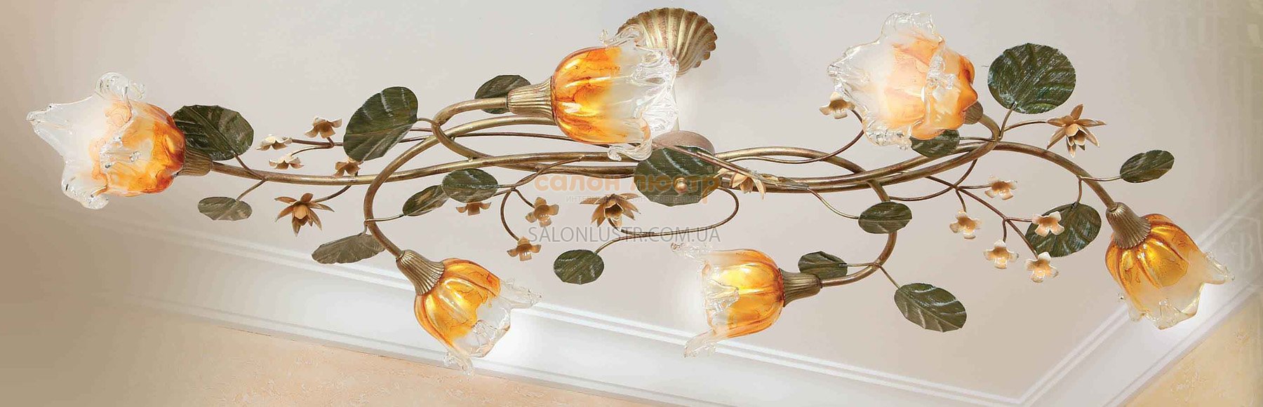 - УКРАЇНАВисота: 28 см; ширина: 118 см; лампи: 6 х Е-14 х 60 Вт.