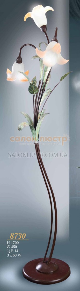 Висота: 170 см; діаметр: 45 см; лампи: 3 х Е-14 х 60 Вт.
