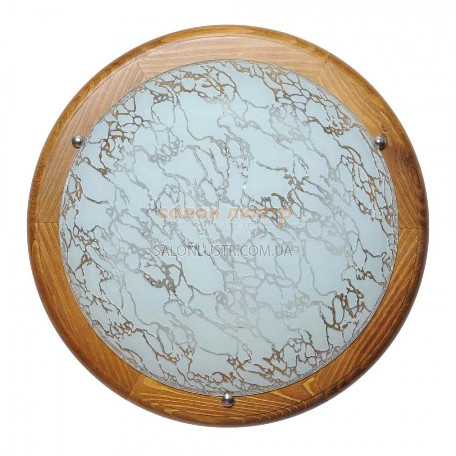 Світильник стельовий настінний виробництва компанії Декору (Україна) Матеріал: метал/стекло/дерево; Колір: дуб / срібло з малюнком; Висота: 8 см; діаметр: 30 см; лампи: 2 х E27х 60 Вт.