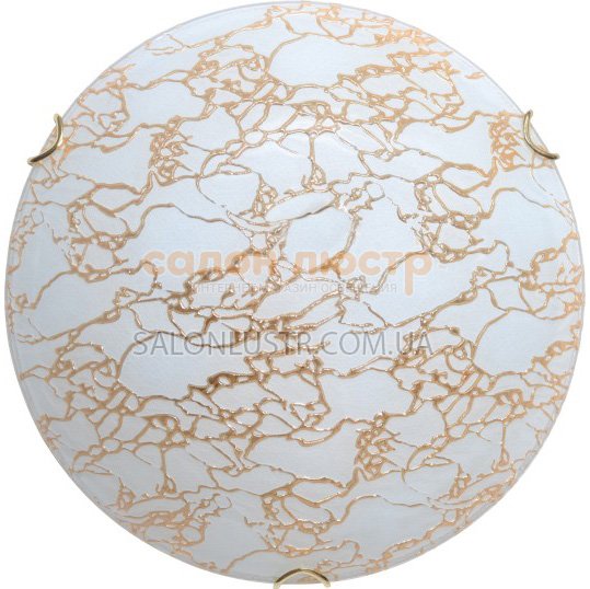 Світильник стельовий настінний виробництва компанії Декору (Україна); Матеріал: метал/стекло; Колір: білий/золото з малюнком; Висота: 8 см; діаметр: 30 см; лампи: 2 х E27х 60 Вт.