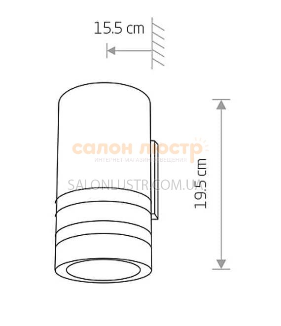 - УКРАЇНАВисота: 25 см; довжина: 46 см; лампи: 2 х Е-14 х 60 Вт. Плафони у світильнику обертаються на шарнірі.