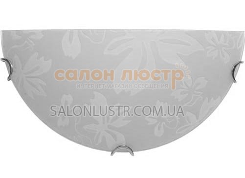Світильник стельовий настінний виробництва компанії Декору (Україна) Матеріал: метал/стекло; Колір: білий з малюнком; Висота: 15 см; діаметр: 30 см; лампи: 1 х E27х 60 Вт.