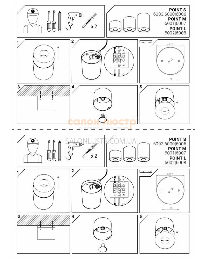 Висота: 18 см; діаметр: 13 см; лампи: 1 х GU10 х 35 Вт.