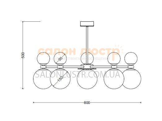 Висота: 30 см; діаметр: 82 см ; лампа: 5 х Е-27 х 60 Вт. - УКРАЇНА