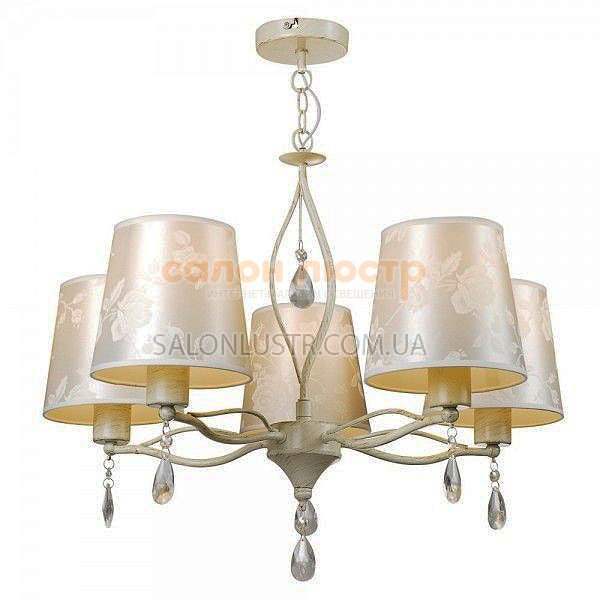 Люстра класична з абажурами виробництва компанії BLITZ(Німеччина); Матеріал: метал, текстиль; Колір підстави: крем+золото; Колір абажурів: бежевий з малюнком; Висота: 50 см; ширина: 62 см лампи: 5 х E27 х 40 Вт.