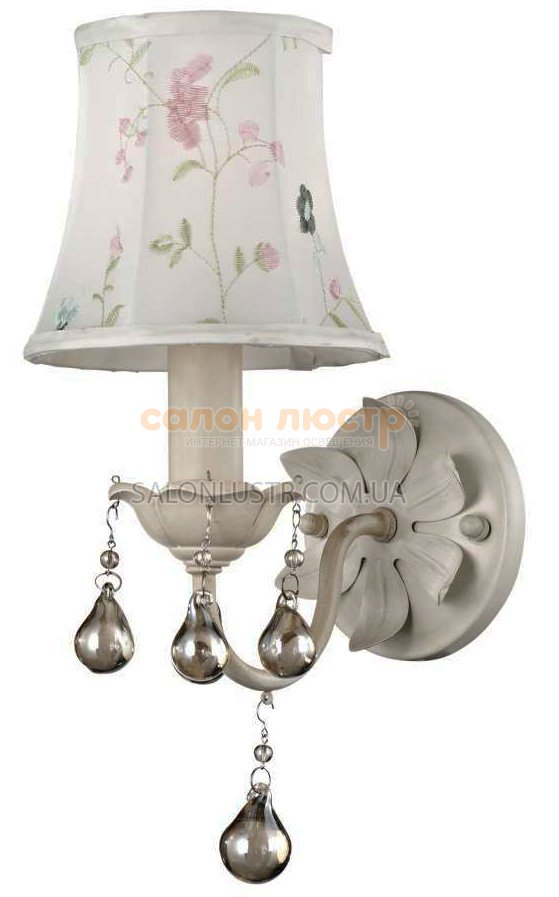 Світильник настінний (бра) серії Cinderella виробництва компанії "Wunderlicht" (Німеччина); Матеріал: метал, текстиль, скло; Колір підстави: крем із золотою патиною; Колір абажура: білий з малюнком; Висота: 35 см; ширина: 15 см; лампи: 1 х Е-14 х 60 Вт.