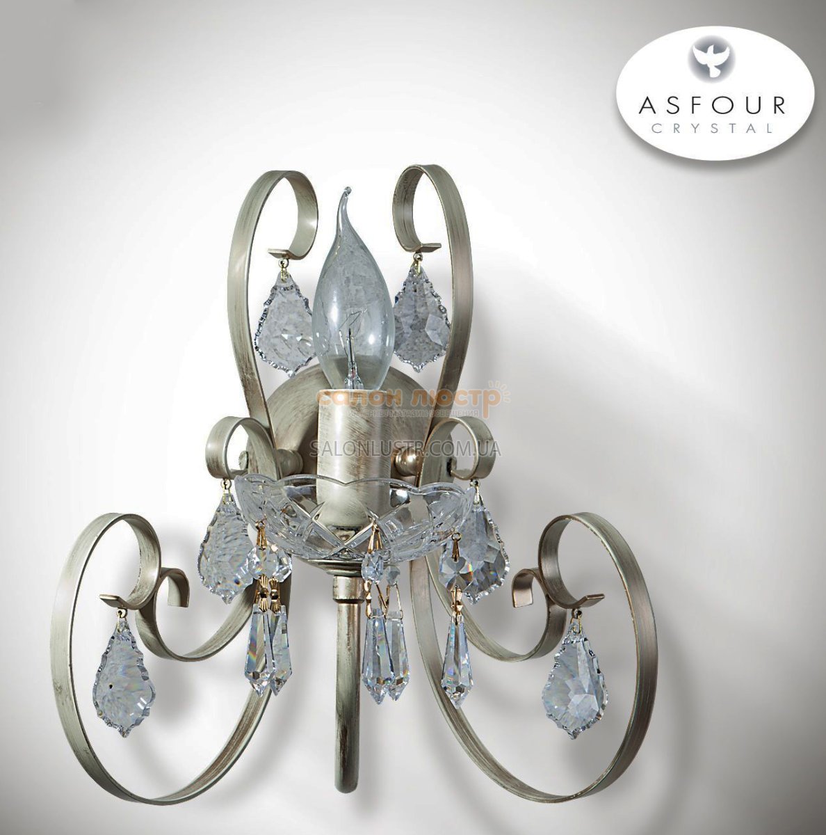 Світильник настінний (бра) із кришталем виробництва Україна; Матеріал: фарбований метал, кришталь"ASFOUR"; Колір основи: Крем - золото - патина; Висота: 30 см; ширина: 25 см; лампи: 1 х Е-14 х 60 Вт.