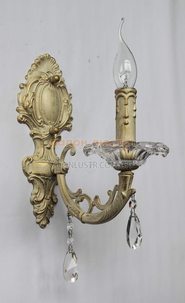 Світильник настінний (бра) серії Skone виробництва компанії " Wunderlicht" (Німеччина); Матеріал: метал / кришталь / стекло; Колір: бежевий із золотою патиною / прозорий / прозоре; Висота: 36,5 см; ширина: 12 см; лампи: 1 х E14 х 60 Вт.