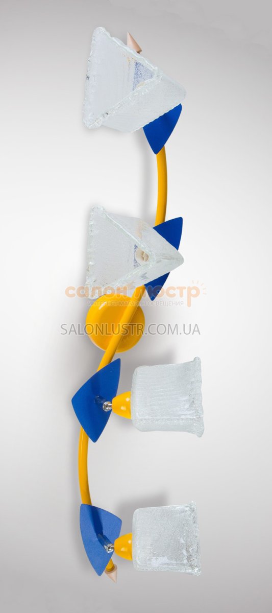 - УКРАЇНАВисота: 33, 5 см; ширина: 77 см; лампи: 4 х Е-14 х 60 Вт. Плафони у світильнику обертаються на шарнірі.
