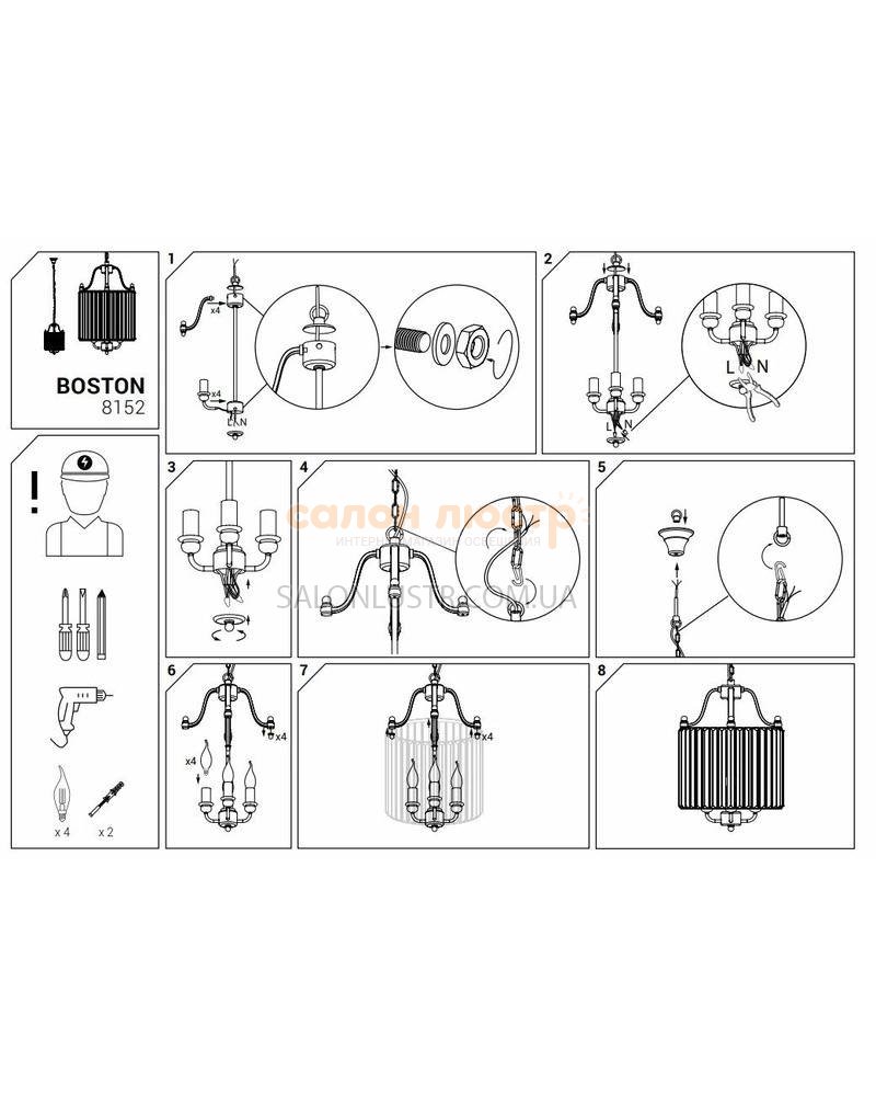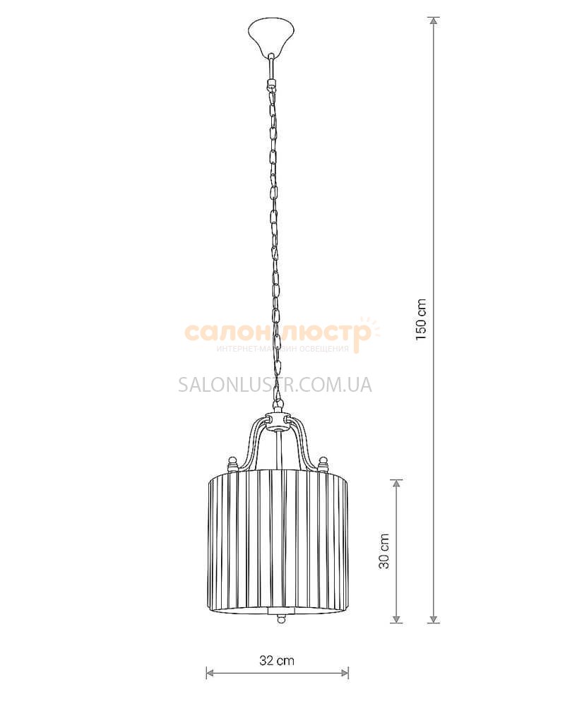 Висота: 60-150 см; діаметр: 32 см; лампи: 4 х Е-14 х 60 Вт.