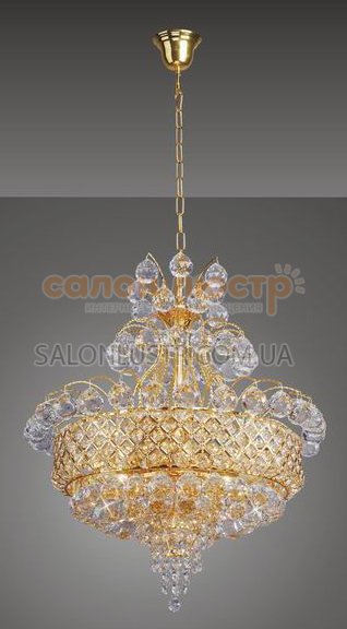 Люстра кришталева виробництва компанії Tinko; Матеріал: метал, кришталь; Колір підстави: золото; Висота: 63-90 см; діаметр: 43 см; лампи: 9 х Е-14 х 60 Вт.