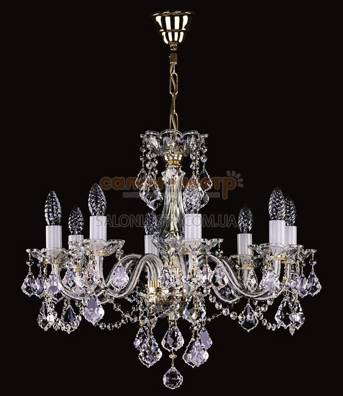 Люстра кришталева виробництва компанії ArtGlass(Чехія); Матеріал: метал, кришталь; Колір (підстави): Gold (золото); Тип (кришталю): Зrystal Exclusive (вищої якості); Висота: 55 см; діаметр: 56 см; лампи: 8 х Е-14 х 40 Вт.