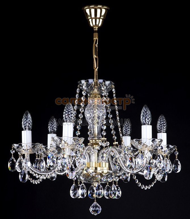Люстра кришталева виробництва компанії ArtGlass(Чехія); Матеріал: метал, кришталь; Колір (підстави): Gold (золото); Тип (кришталю): Зrystal Exclusive (вищої якості); Висота: 47 см; діаметр: 50 см; лампи: 6 х Е-14 х 40 Вт.
