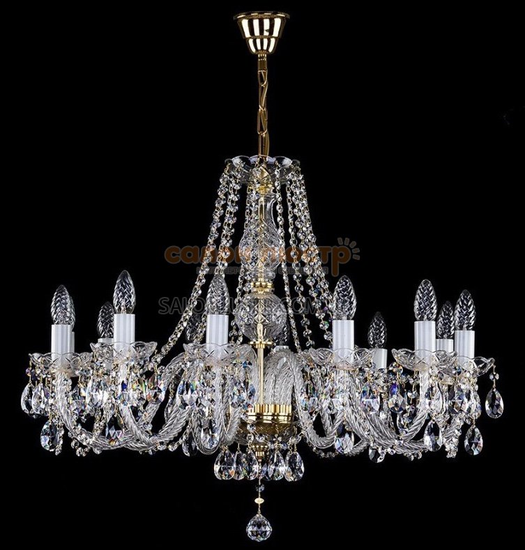 Люстра кришталева виробництва компанії ArtGlass(Чехія); Матеріал: метал, кришталь; Колір (підстави): Gold (золото); Тип (кришталю): Зrystal Exclusive (вищої якості); Висота: 62 см; діаметр: 76 см; лампи: 12 х Е-14 х 40 Вт.