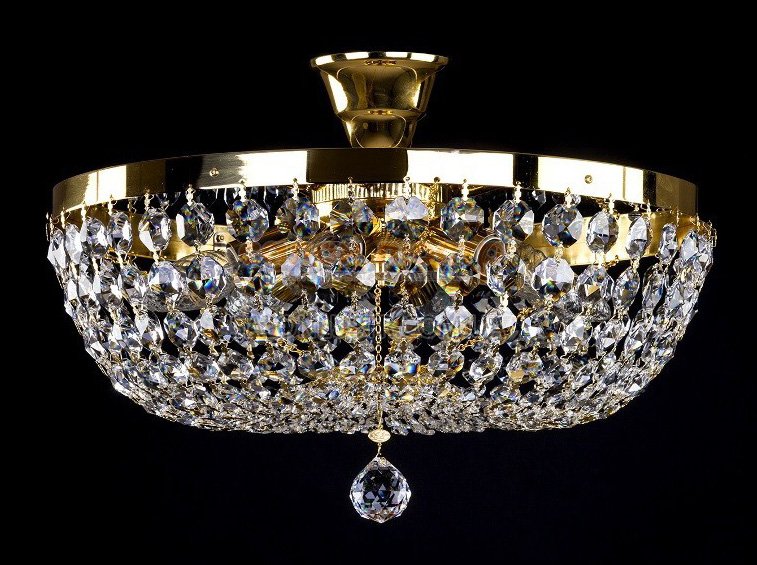 Люстра кришталева стельова виробництва компанії ArtGlass(Чехія); Матеріал: метал, кришталь; Колір (підстави): Gold (золото); Тип (кришталю): Зrystal Exclusive (вищої якості); Висота: 35 см; діаметр: 60 см; лампи: 12 х Е-14 х 40 Вт.