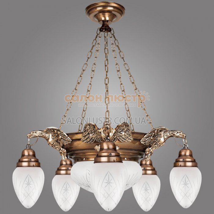 Висота: 89 см; ширина: 59 см; лампи: 1 х Е27 х 100 Вт. + 5 x E27 x 60 Вт.