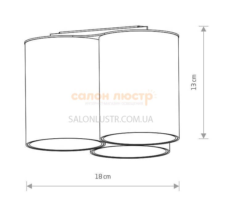 Висота: 13 см; діаметр: 9х18 см; лампи: 2 х GU10 10Вт LED.