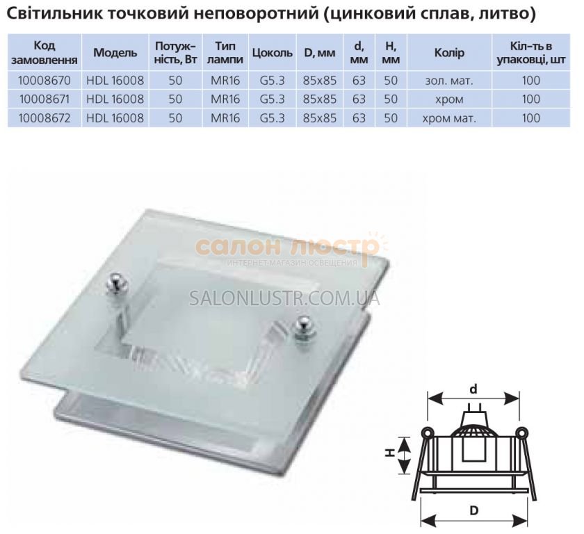 Крапковий світильник HDL 16008 MR16 HDL 16008 MR16