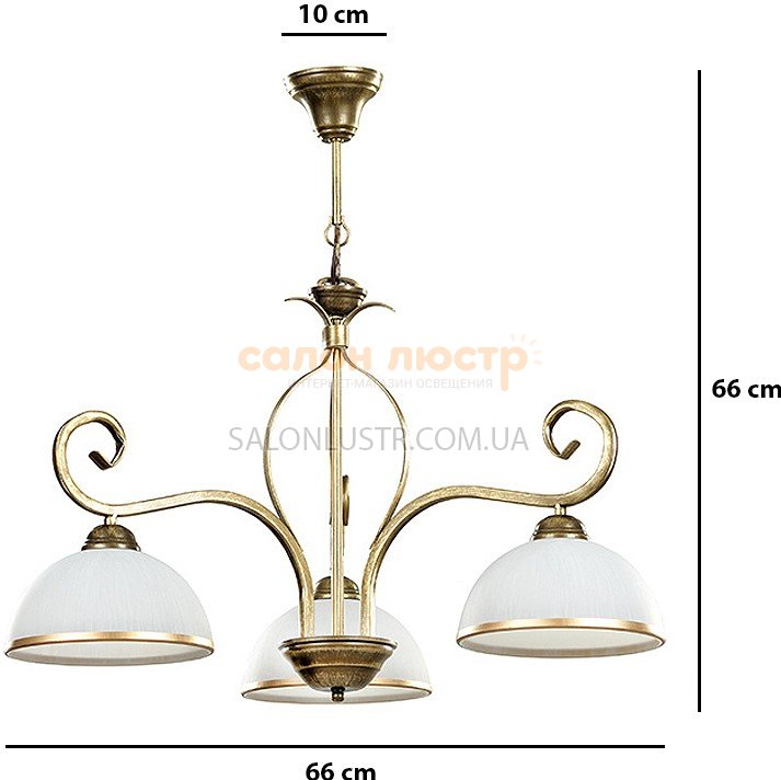 Висота: 66 см; діаметр: 66 см; лампи: 3 х Е27 х 60 Вт.
