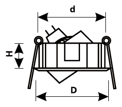 Діаметр: 9 см; діаметр урізного отвору: 7,5 см; висота: 2,5 см; лампа: 1галогенна лампа MR16,цоколь G5,3; напруга: 12В/230В; потужність: 50Вт,35Вт,20Вт.